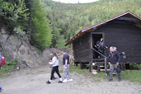 Beim Abstieg stoße ich am Waldrand auf ein ungleiches Paar, das ich bereits bei der Hütte getroffen hatte - ein junger Guide aus Brasov mit seiner Wander-Kundin, einer gut 80-jährigen, aber noch sehr rüstigen Engländerin. Er hätte auf der Hütte bemerkt, dass ich ein Teleobjektiv mit mir trage, ob sie es wohl kurz benützen dürften? Er hat leider kein Fernglas dabei und in der 500 m entfernten Felswand befände sich möglicherweise ein Bär! Abwechselnd beobachten wir den kleinen schwarzen Fleck und tatsächlich lässt sich neben dem erwachsenen Tier ein Junges erkennen. Die beiden bewegen sich nicht sehr viel und suchen den kleinen Felsabsatz in der Wand nach Essbarem ab. Manchmal braucht es halt nur ein wenig Glück für einen tollen "wildlife moment".